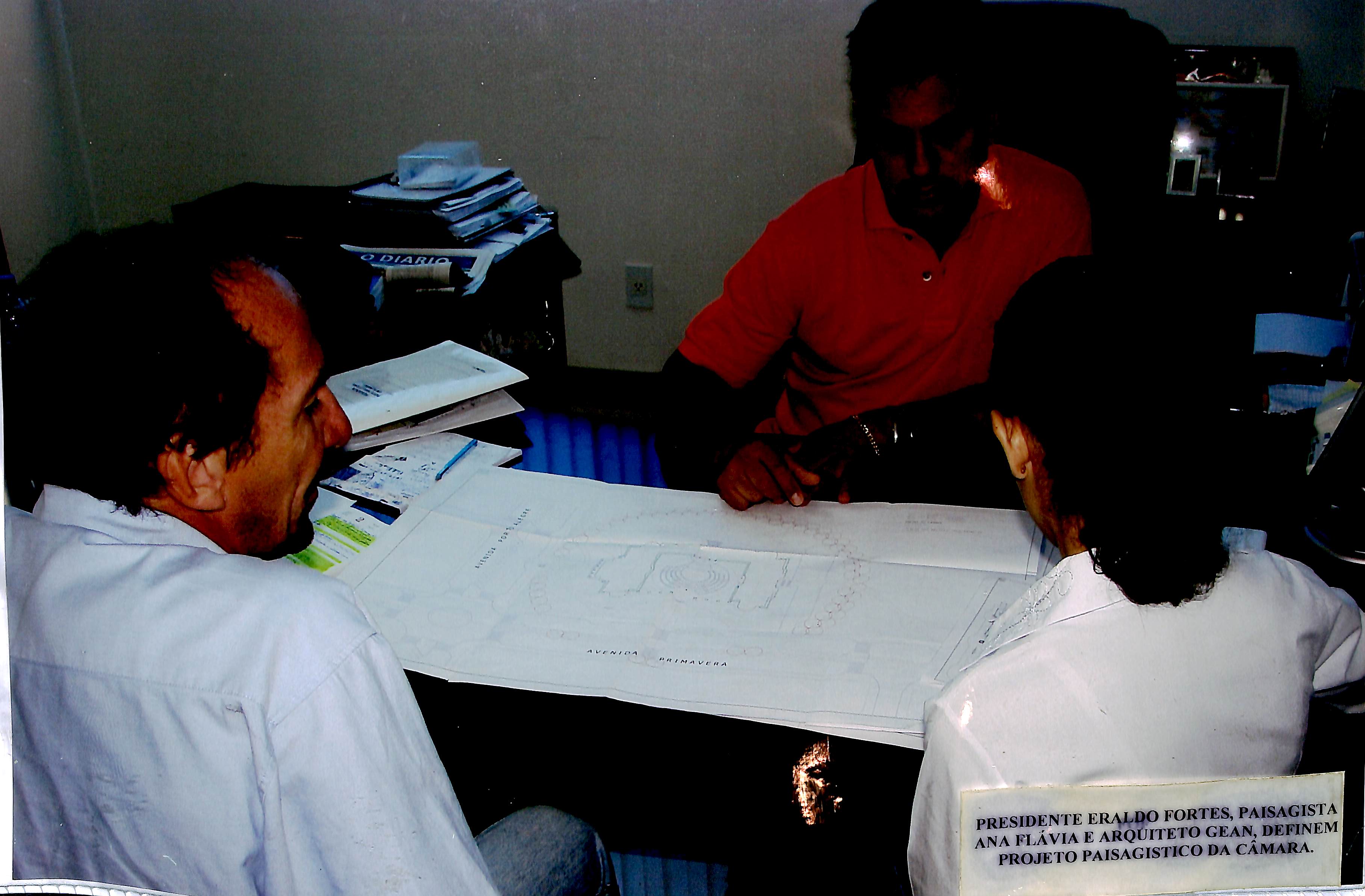 Presidente Eraldo Fortes, paisagista Ana Flávia e arquiteto Gean definem projeto paisagístico da Câmara