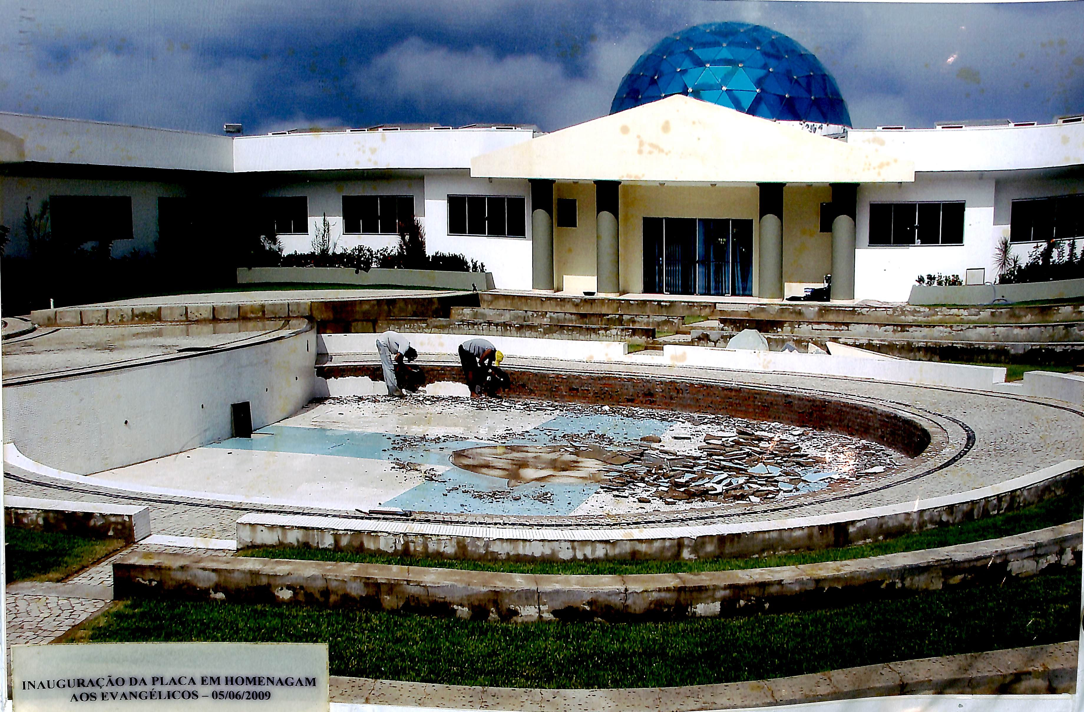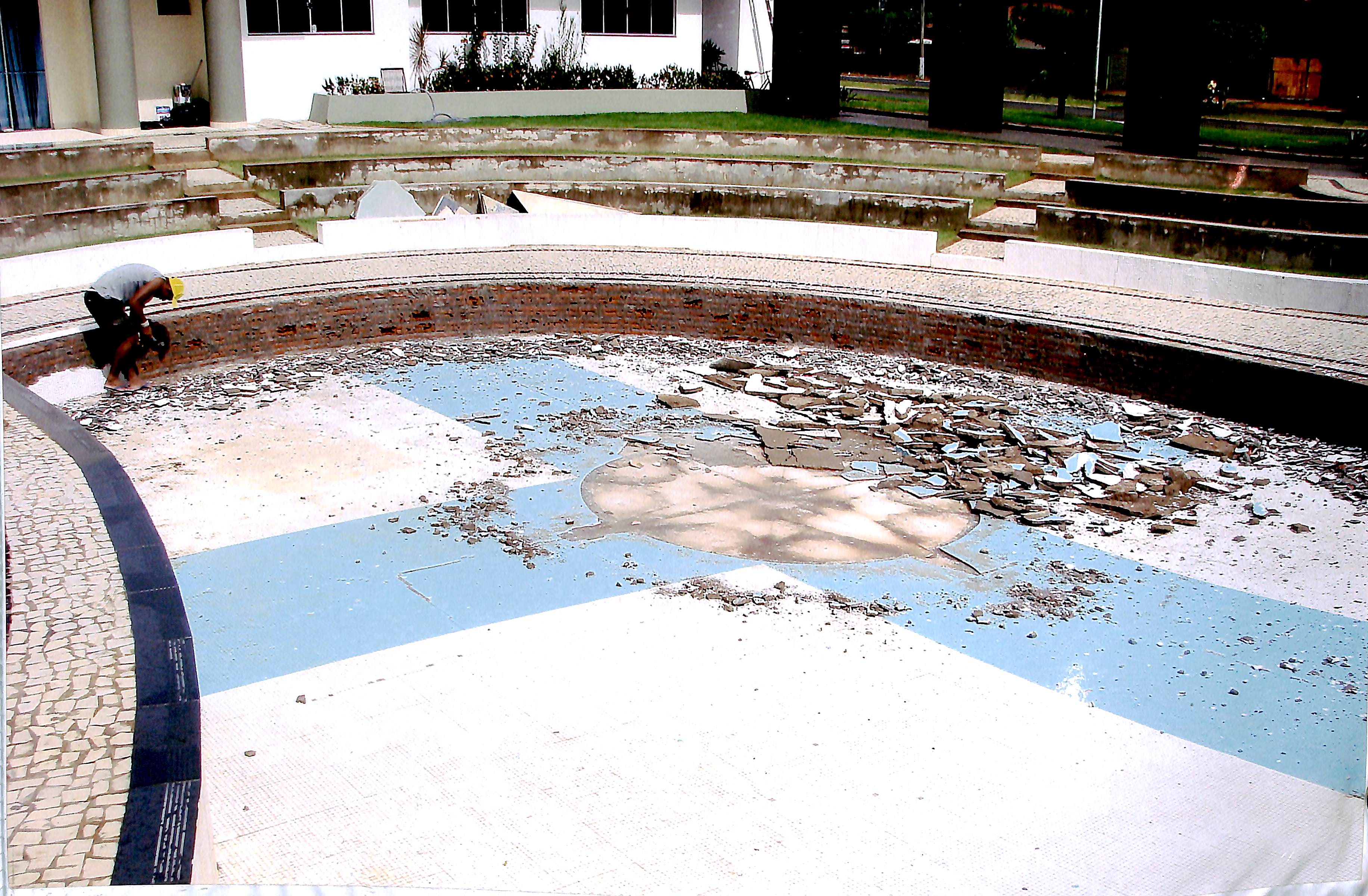 Construção e instalação da fonte luminosa - Fevereiro de 2008 - Arquiteto Sérgio Denardi e construtor Claudino Silva