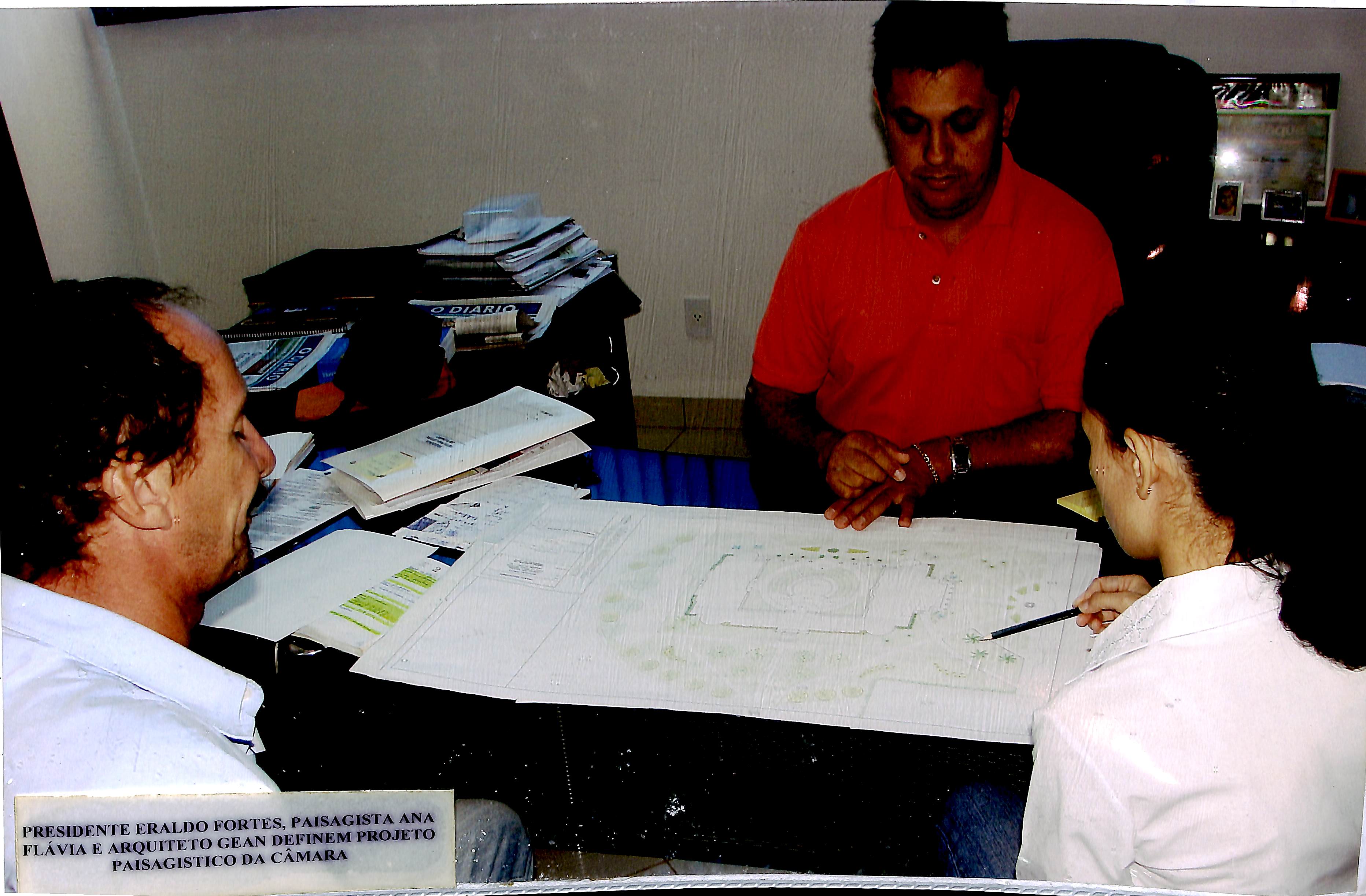 Presidente Eraldo Fortes, paisagista Ana Flávia e arquiteto Gean definem projeto paisagístico da Câmara