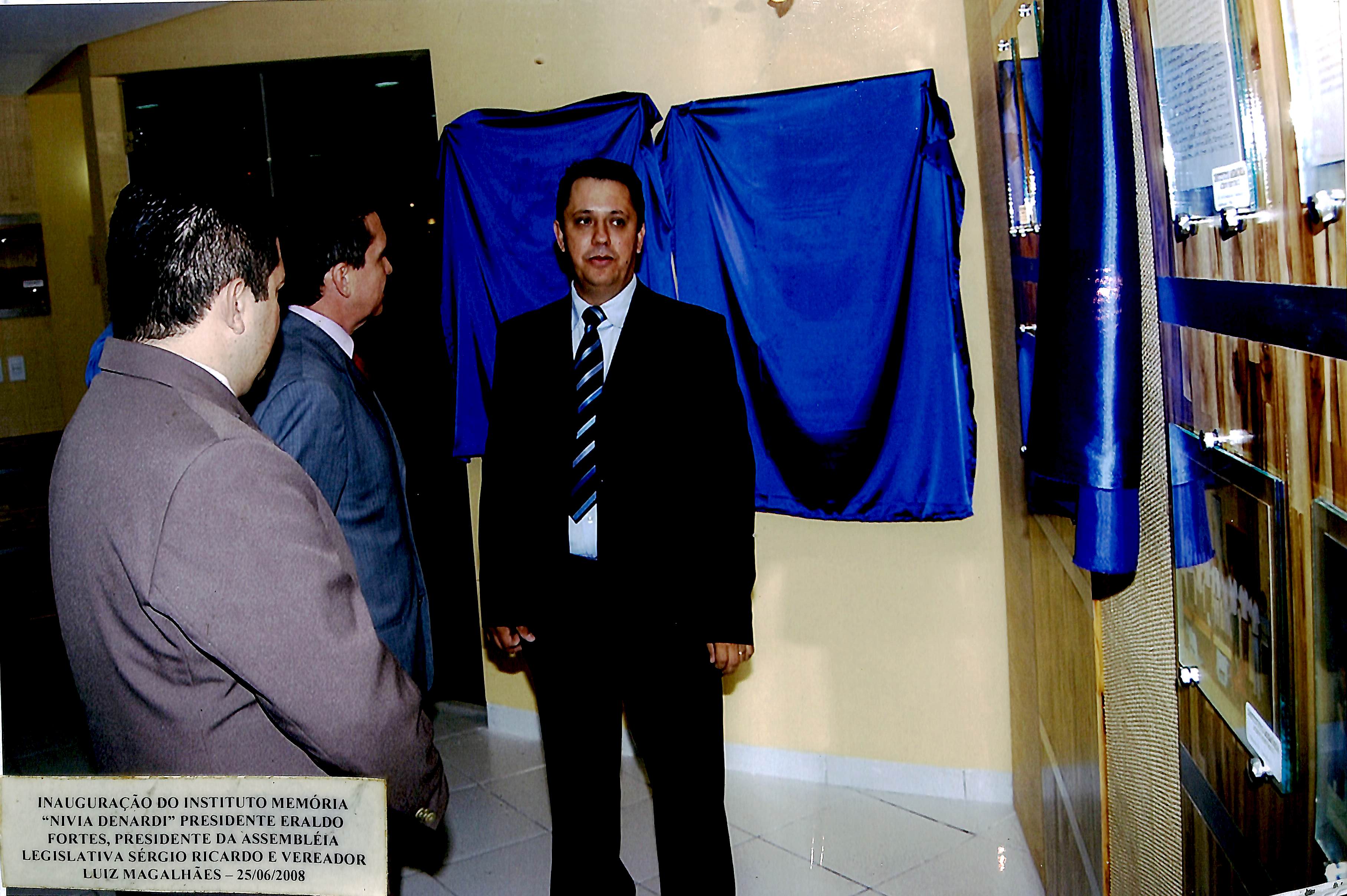 Inauguração do Instituto Memória "Nívea Denardi" - Presidente Eraldo Fortes, Presidente da Assembleia Legislativa Sérgio Ricardo e Vereador Luiz Magalhães - 25/06/2008