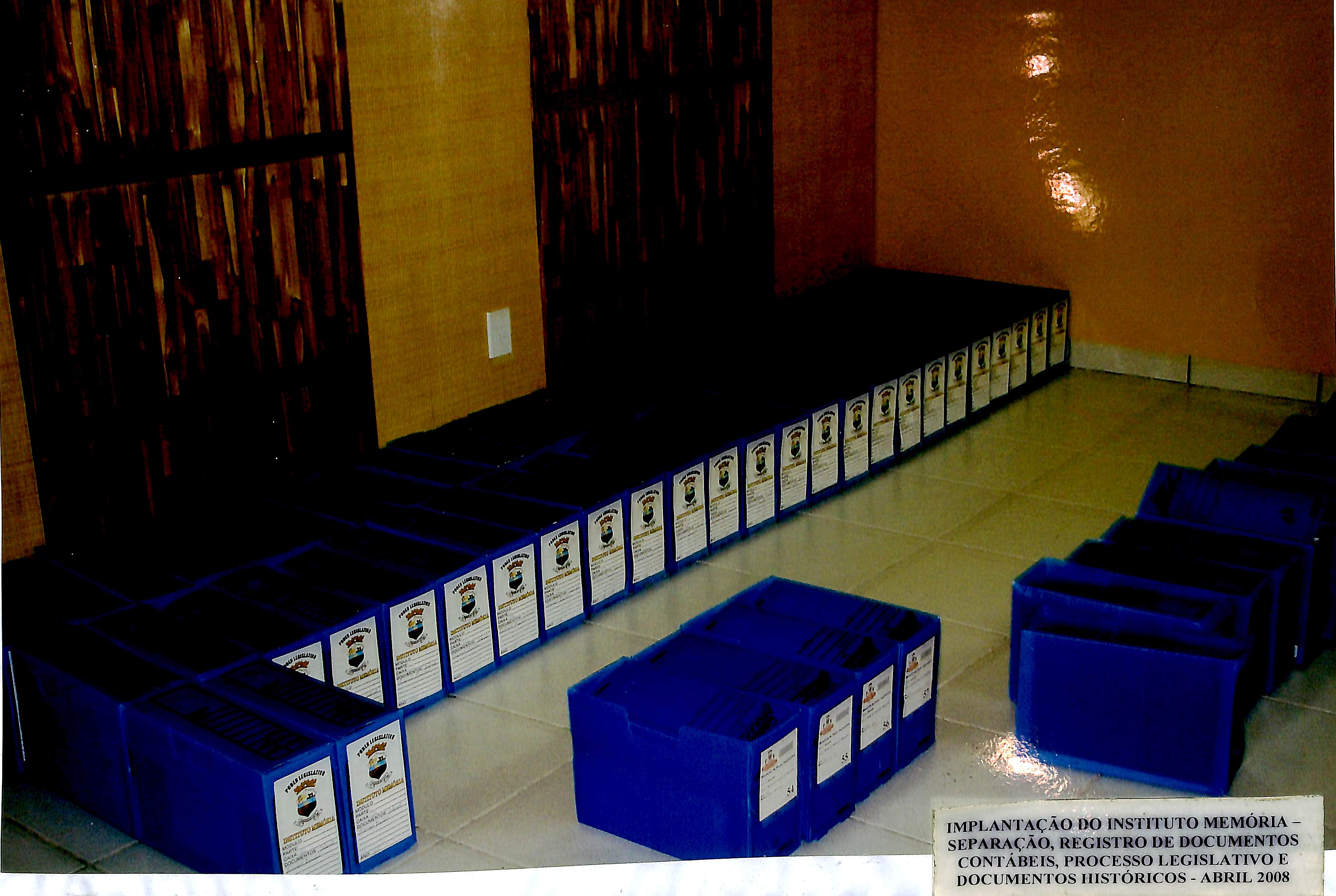 Implantação do Instituto Memória - Separação, registro de documentos contábeis, processo legislativo e documentos históricos - Abril de 2008