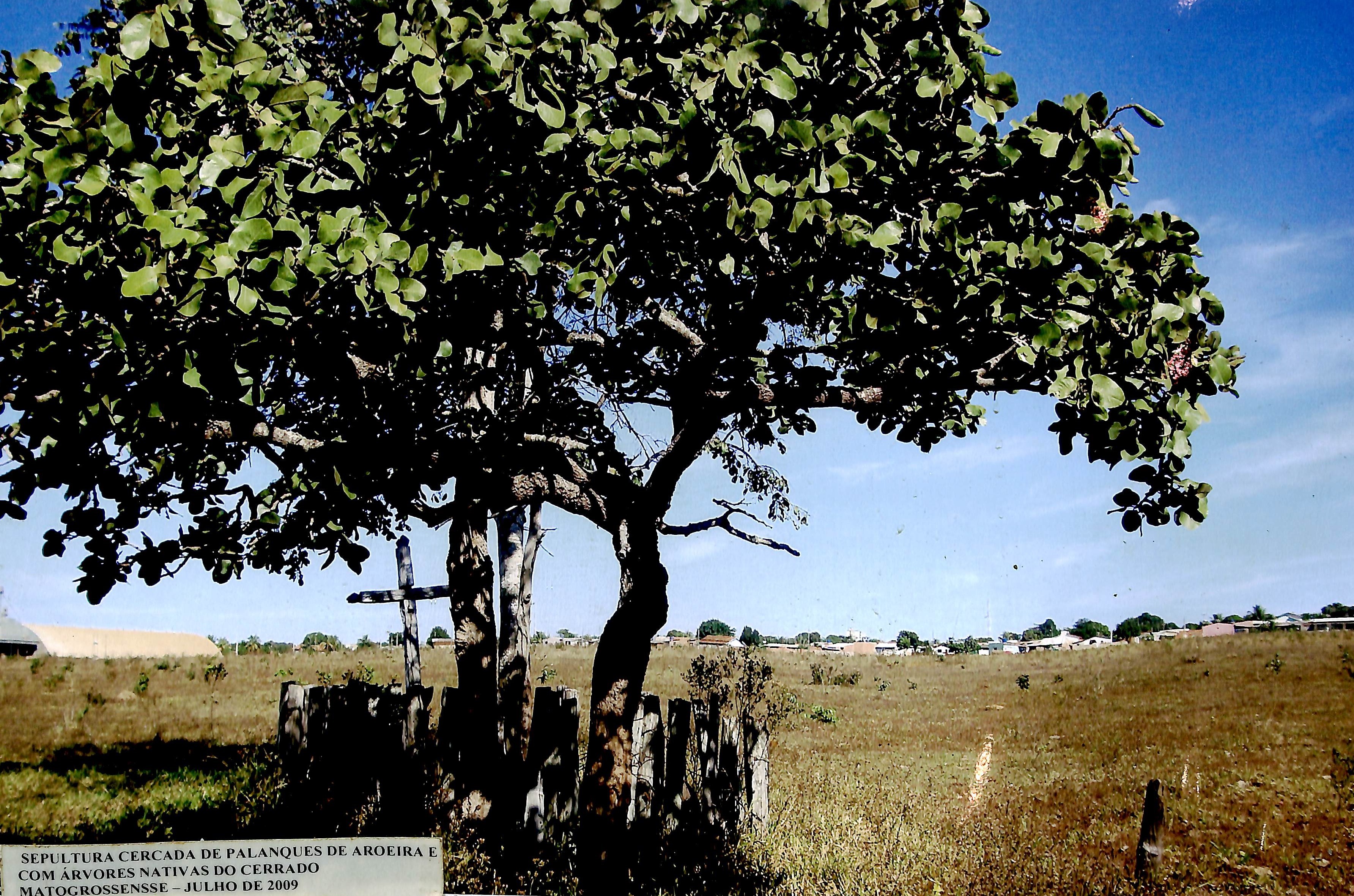 Sepultura cercada de palanques de aroeira e com árvores nativas do cerrado mato-grossense - Julho de 2009