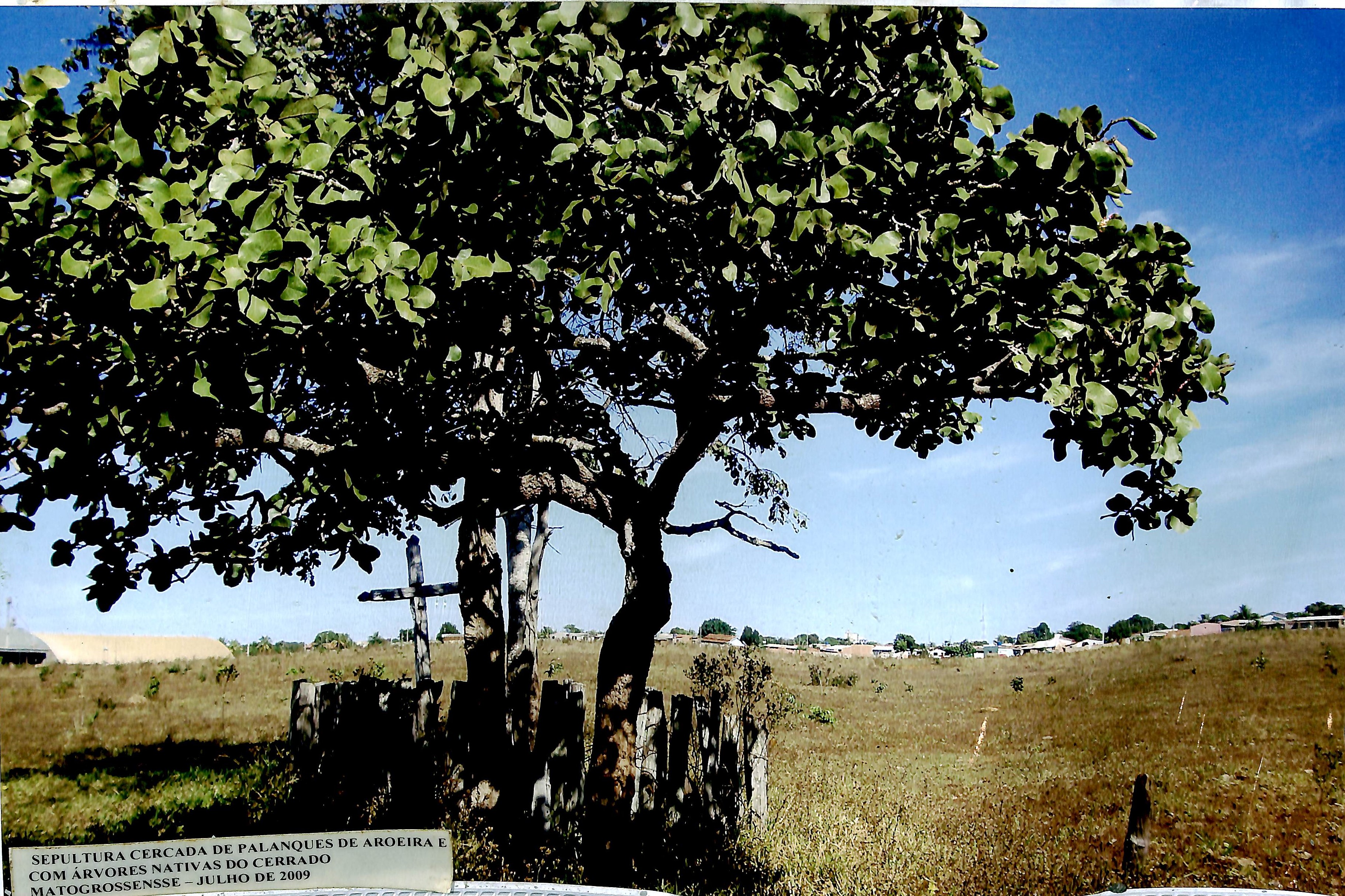 Sepultura cercada de palanques de aroeira e com árvores nativas do cerrado mato-grossense - Julho de 2009