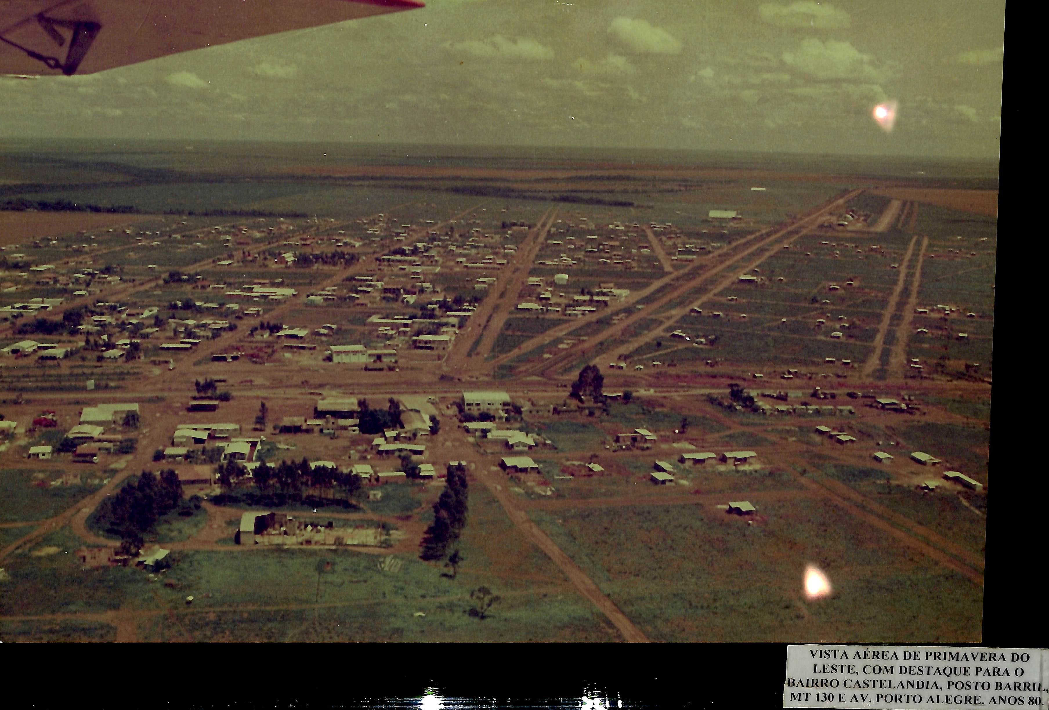 Vista aérea de Primavera do Leste, com destaque para o Bairro Castelândia, Posto Barril, MT-130 e Av. Porto Alegre - Anos 80